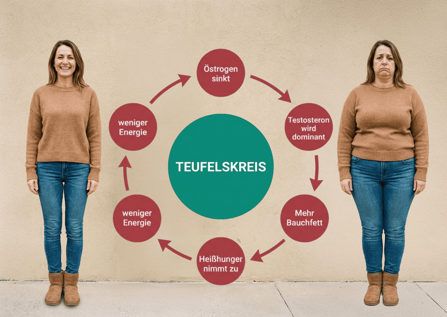 „Das Problem ist nicht Disziplin. Das Problem ist die hormonelle Blockade. Solange Testosteron dominant bleibt, arbeitet der Körper gegen dich – egal wie viel Sport du machst oder wie wenig du isst."