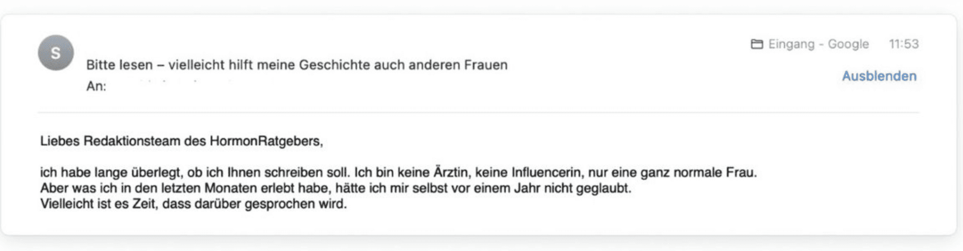 Hinweis der Redaktion: Dieser Text ist ein authentischer Leserbericht. Susanne M. kontaktierte uns nach unserem Artikel über hormonelle Veränderungen in der Perimenopause und bat uns, ihre Geschichte zu teilen.