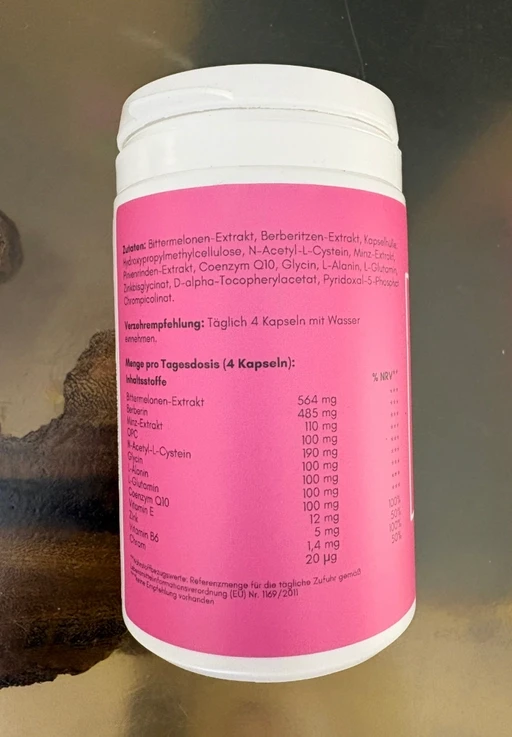 Und bin immer wieder auf die gleichen Wirkstoffe gestoßen: Berberin, Bittermelone, Minz-Extrakt, Zink & aktives Vitamin B6.
